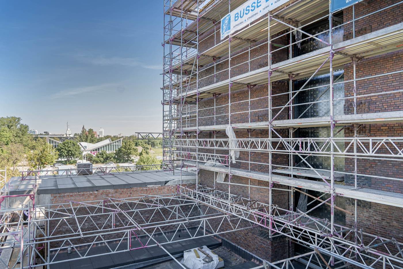 Doch auch große Ikonen brauchen Pflege. Jahrzehnte intensiver Nutzung und mehrere Hochwasserereignisse hinterließen Spuren. Deshalb wird die Stadthalle seit 2020 umfassend saniert. Ziel ist es, die denkmalgeschützte Substanz zu bewahren und zugleich den Ansprüchen einer modernen Eventlocation gerecht zu werden.Bauleiter Herr Geiger beschreibt es so: